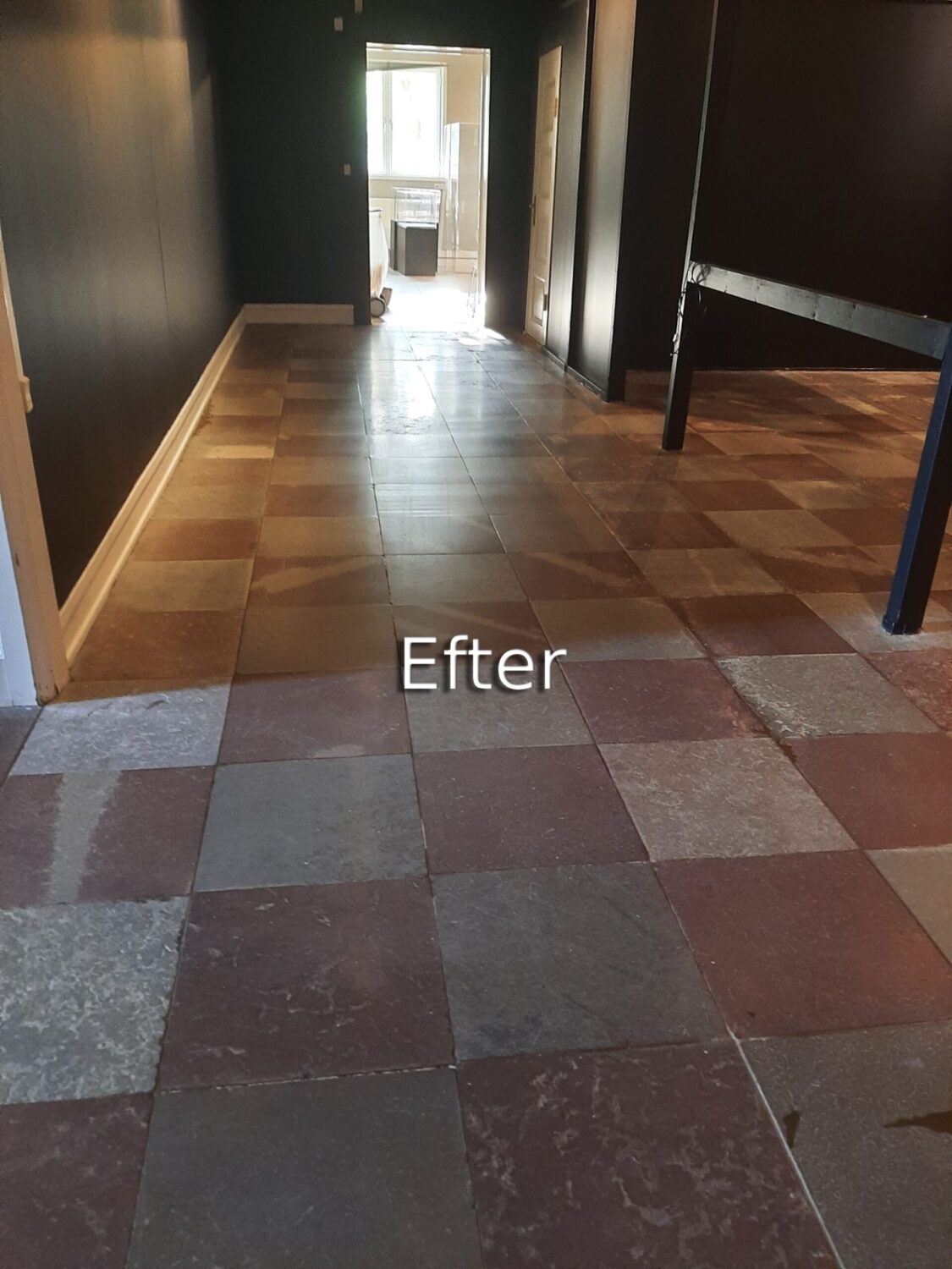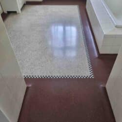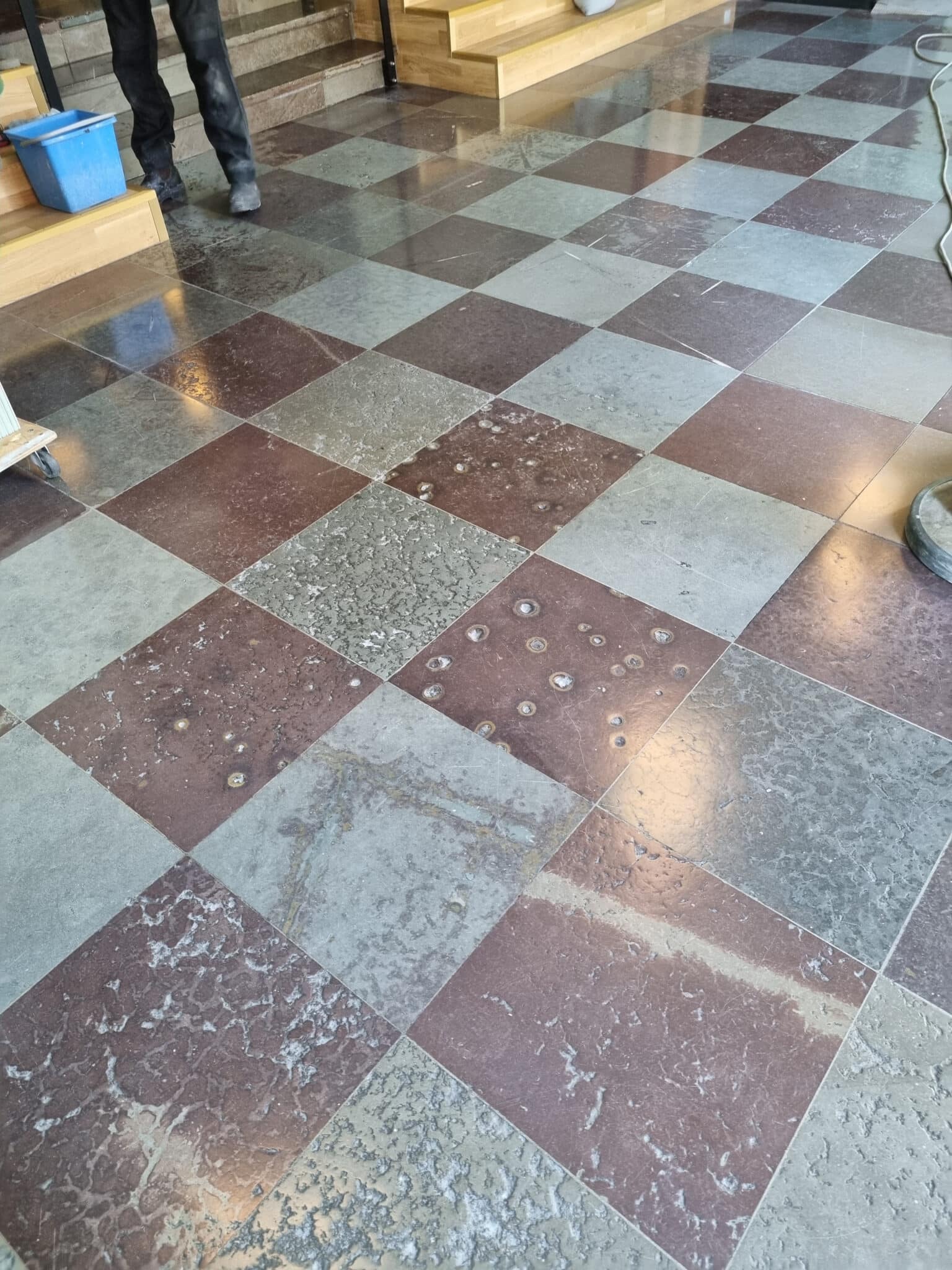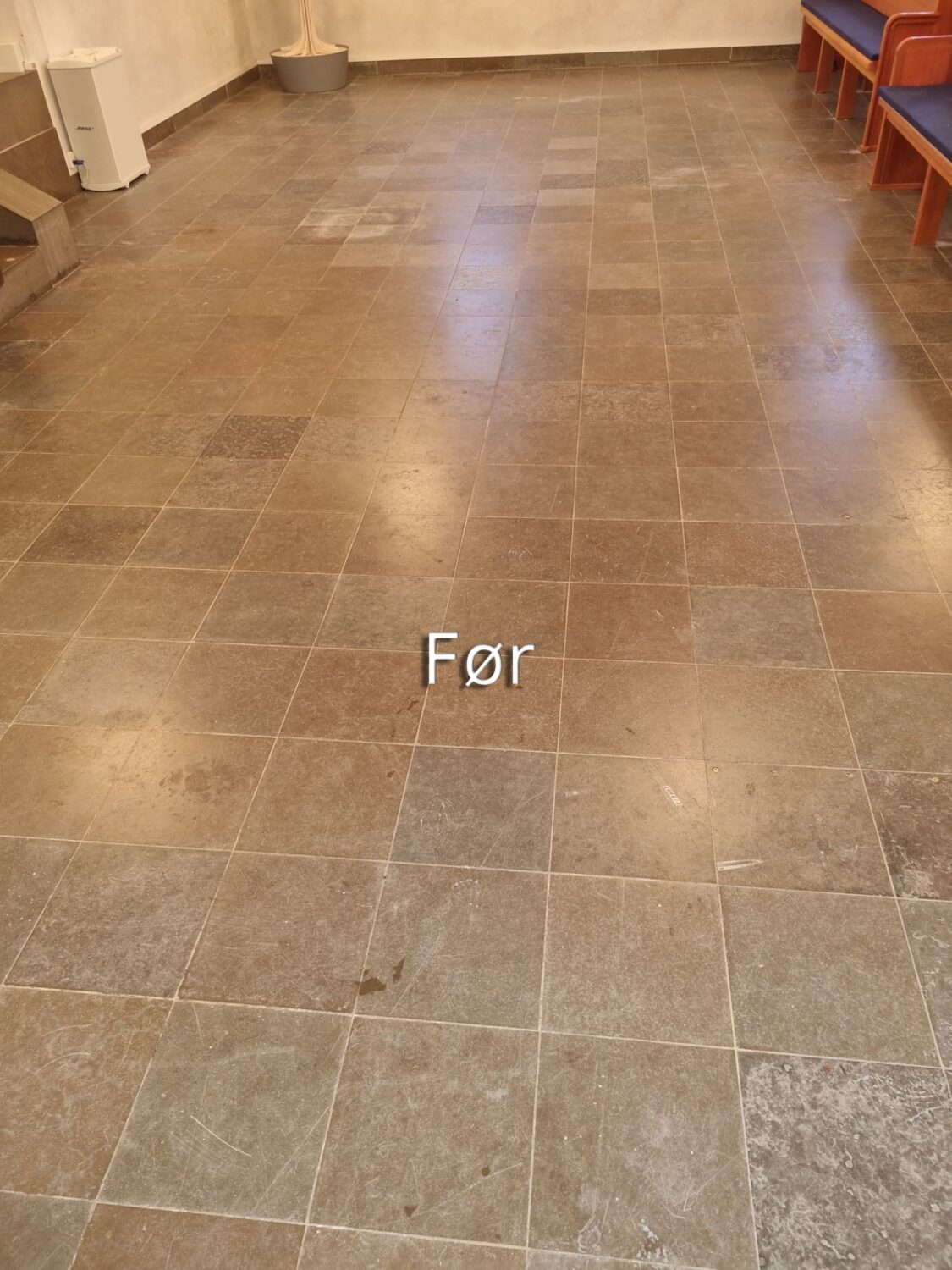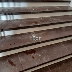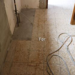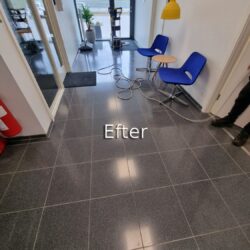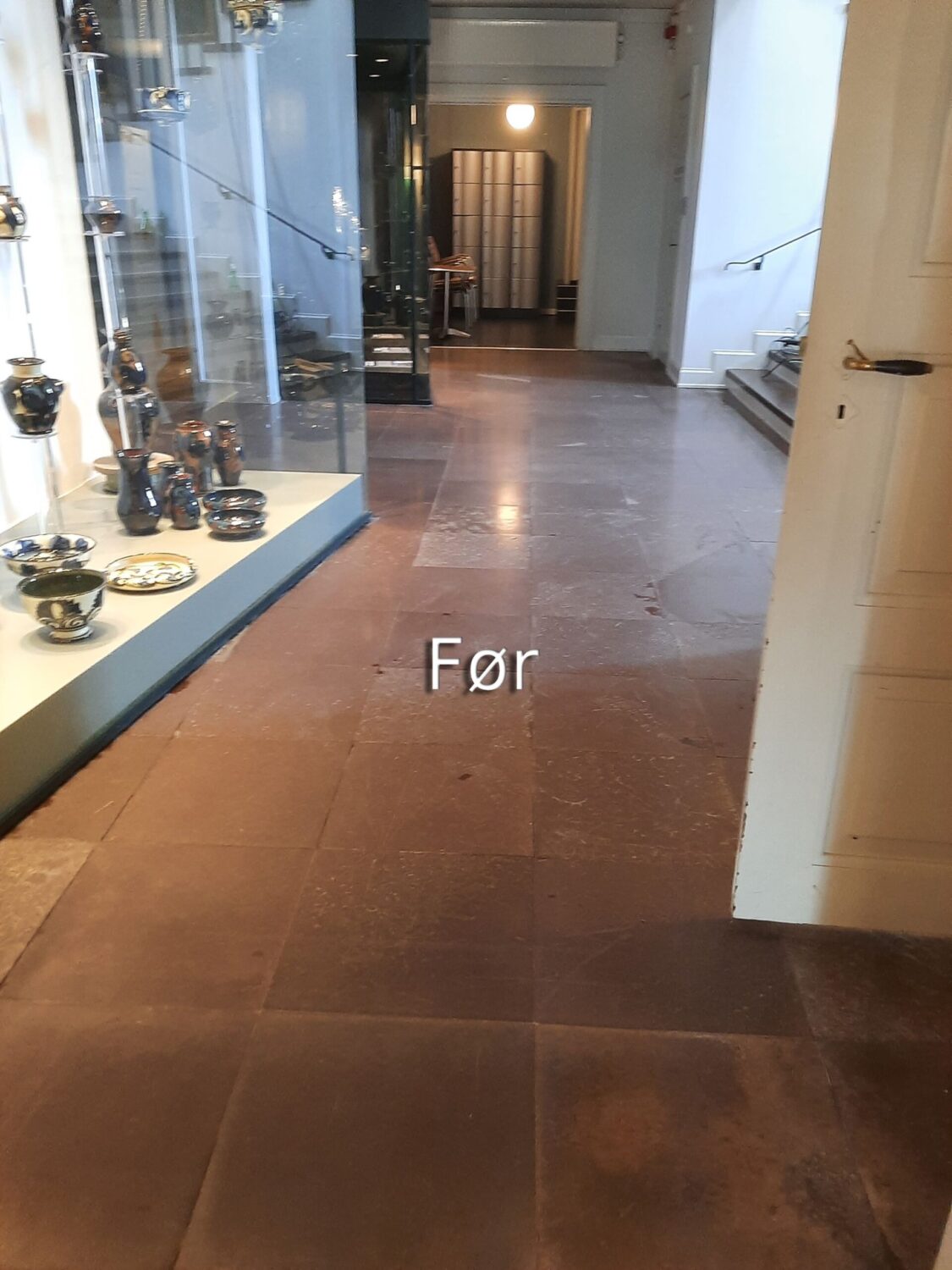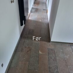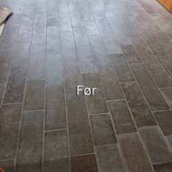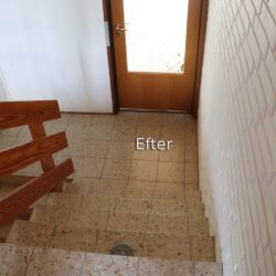 Polering af fliser på Horsens Museum før Polering af fliser på Horsens Museum efter