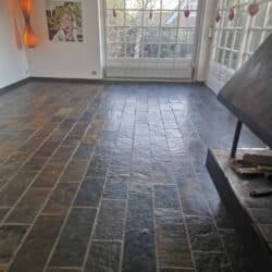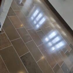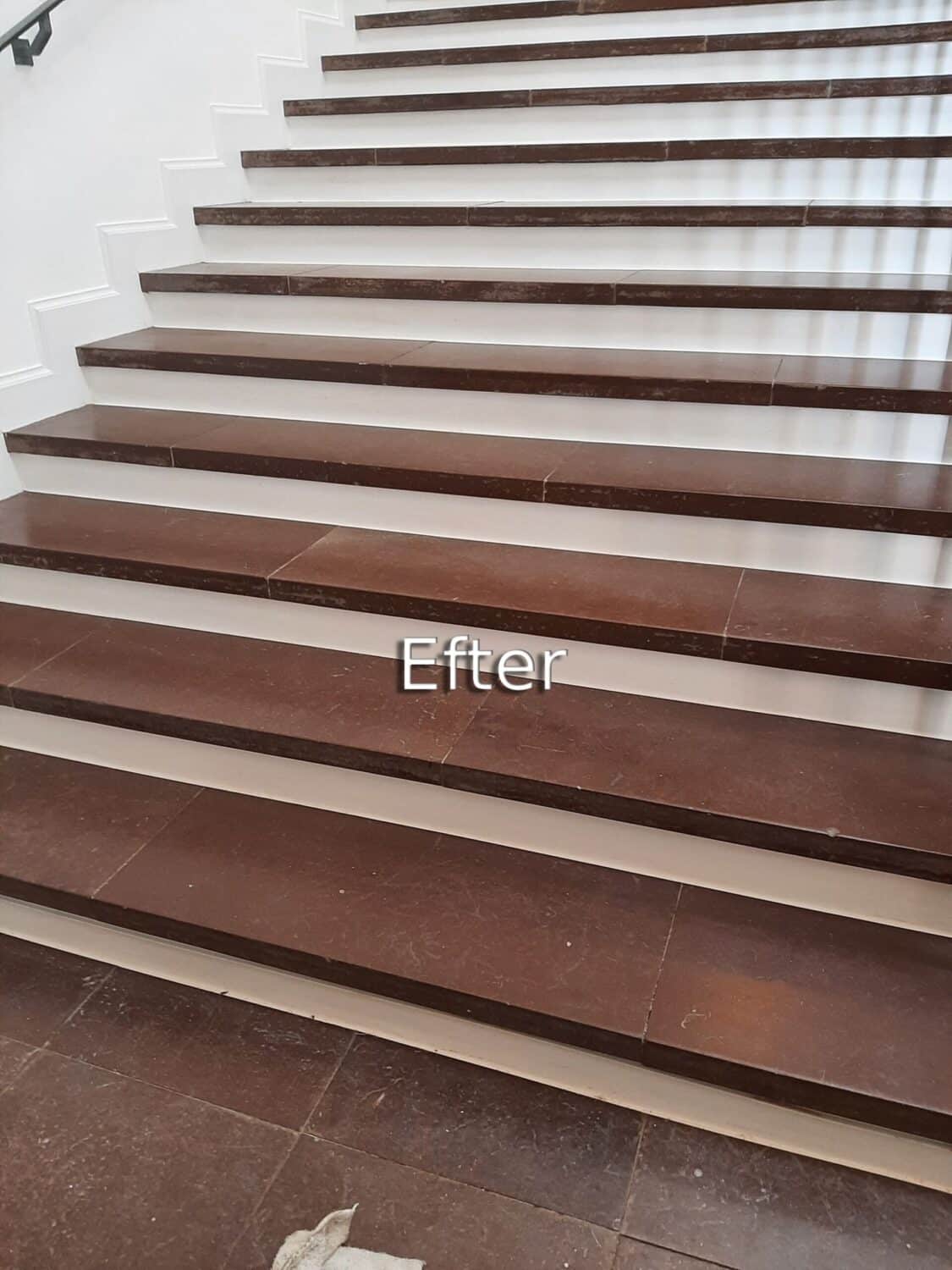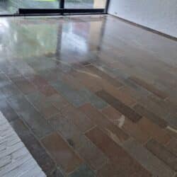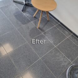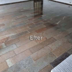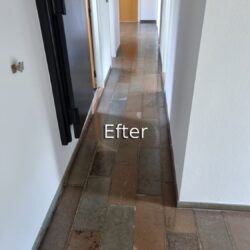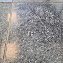 Hos Stenspecialisten får du et blankt, slidstærkt gulv – uden brug af kemi og uden behov for imprægnering efterfølgende.