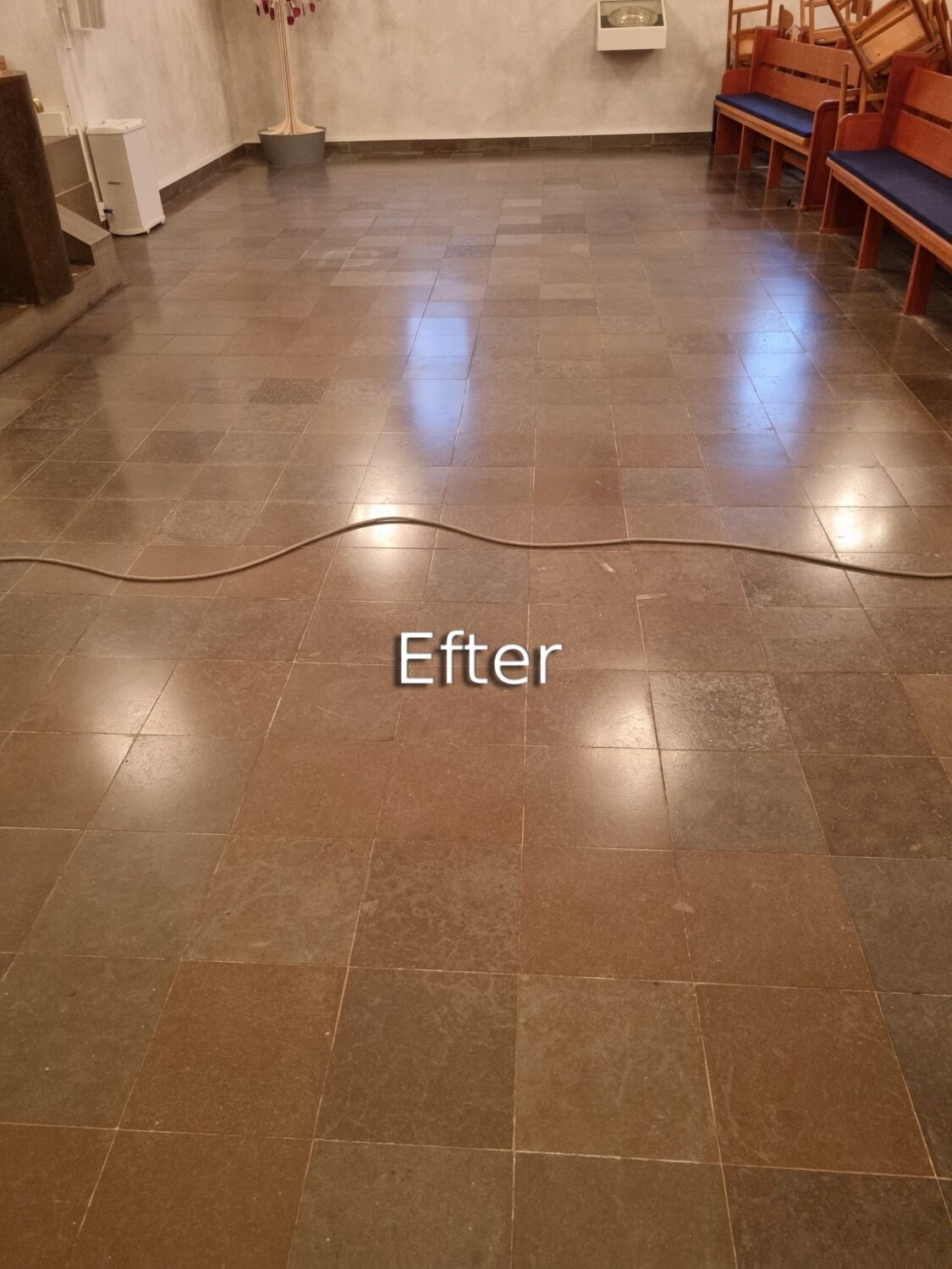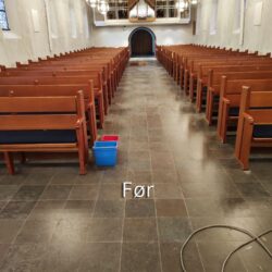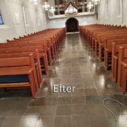 Polering af klinker i Vium Kirke Polering af klinker i Vium Kirke efter