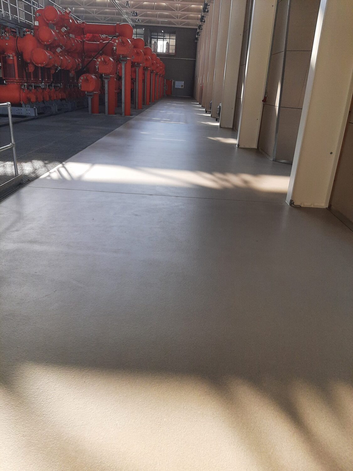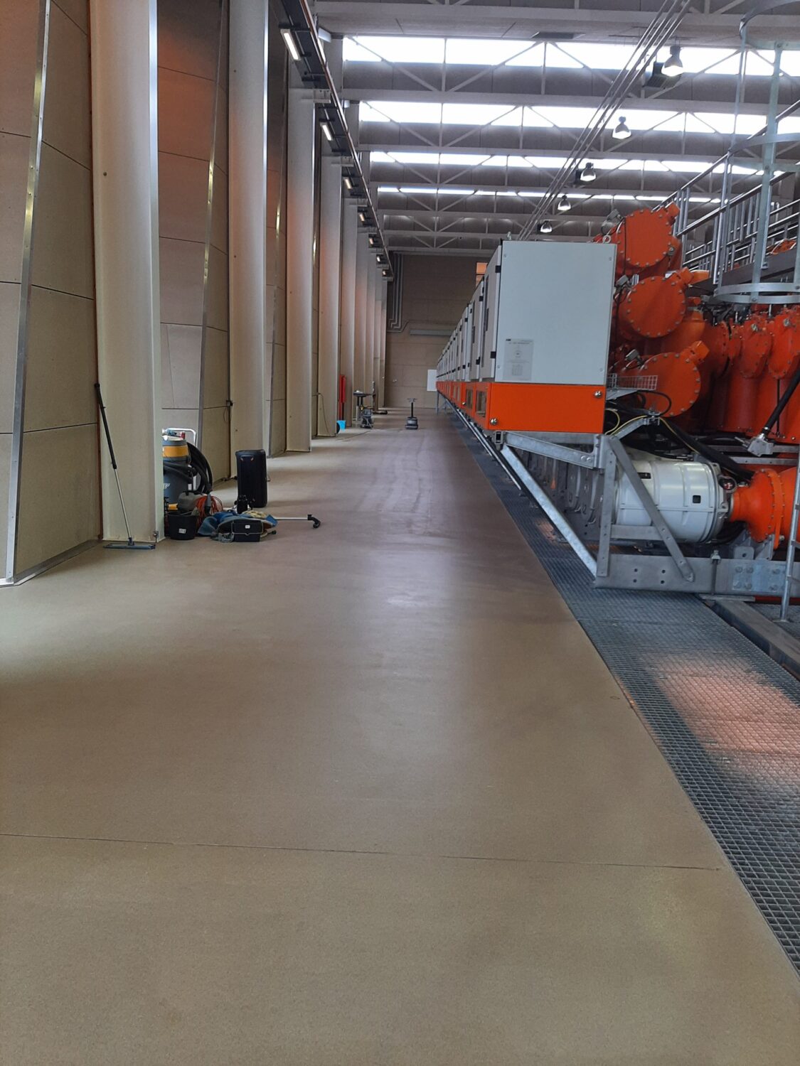 Vi har udført en polering af epoxy gulv i en produktionshal, hvor der kun må være et minimalt antal af støvpartikler. Det betyder, at gulvet skal være nemt at holde rent. Derfor har vi diamantpoleret gulvet, så det får en bland og smudsafvisende overflade. Derudover bliver gulvet utrolig flot.